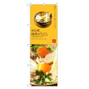 グッズプロ製造(ABCのデザインが選べるのぼり旗)でご相談ください。 内容 : 鍋焼きうどん サイズ : 一般サイズW60 × H180cm 素材 : ポンジ 補強 :...