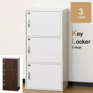 キーボックス 幅40cm【動画あり】 ホワイト/ブラウン A4本棚 鍵付き収納ボックス 3段ボックス 扉付き カギ付き扉収納 キャビネット 整理棚ラック セキュリティー収納■メーカー希望小売価格はメーカー...
