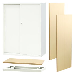 鍵2本 カラー 木目塗装×ホワイト 木目調 ナチュラル 木目塗装 書庫 キャビネット 棚付き 鍵付き 備品収納 オフィス収納 収納家具 収納棚 収納ユニット 収納 業務用 オフィス 会社...
