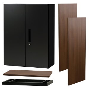 最大6段組み合わせてモダン収納! 木製キャビネット/3段扉付き上置き用A4に対応した1〜3段のオープンと扉付きの棚を最大6段積み重ね可能! 扉カラーは、ブラック。施錠管理できるカギ付きです。