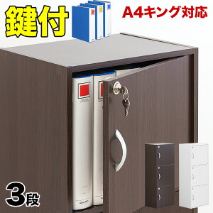 同じ鍵を使用 鍵付き収納ボックス A4サイズ対応 3段ボックス 扉付き カギ付き収納ボックス 扉に鍵を設けた幅40cmのキャビネット 本やA4ファイル 雑誌も収納できる鍵付きカラーボックス 私物...