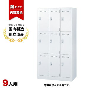 扉カラーが選べる日本製シリンダー錠スチールロッカー 3列3段 9人用3色から選べる更衣室ロッカー。収納に便利な網棚、地震などで扉が開くのを防ぐラッチ機能付き。連結・拡張可能です。スタンダードなシリンダー錠タイプ。カギ2本付き。