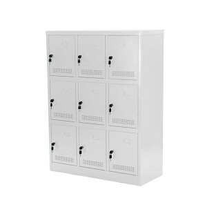 ●スチールロッカー 9人用● ●材質・・・スチール(厚み・・約1(mm) ●鍵×18(内スペアキー9個) ●匂いや湿気がこもりにくい、通気口付き。 ...