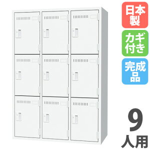 扉カラーが選べる日本製内筒交換錠スチールロッカー 3列3段 9人用3色から選べる更衣室ロッカー。収納に便利な網棚、地震などで扉が開くのを防ぐラッチ機能付き。連結・拡張可能です。カギ紛失時に内筒自体を交換できる内筒交換錠タイプ。