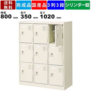 扉カラーが選べる日本製シリンダー錠スチールロッカー 3列3段 9人用3色から選べる更衣室ロッカー。収納に便利な網棚、地震などで扉が開くのを防ぐラッチ機能付き。連結・拡張可能です。スタンダードなシリンダー錠タイプ。カギ2本付き。