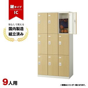 扉カラーが選べる日本製内筒交換錠スチールロッカー 3列3段 9人用3色から選べる更衣室ロッカー。収納に便利な網棚、地震などで扉が開くのを防ぐラッチ機能付き。連結・拡張可能です。カギ紛失時に内筒自体を交換できる内筒交換錠タイプ。