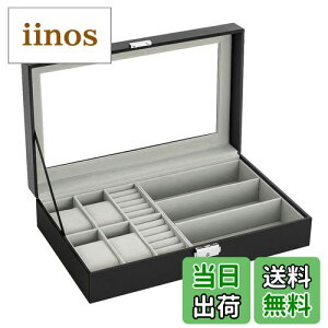 【ウォッチケース素材&サイズ】外側:カーボン、クッション:PUレザー製、トッププレート:クリアガラス、サイズ:34.5cm(L)*12cm(W)*10.5cm(H) 収納力:上段6個、下段ジュエリー、指輪...