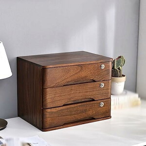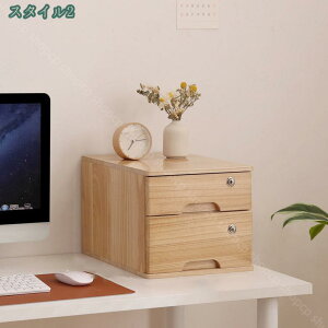 鍵付き 卓上収納ボックス 2段 引き出し 木製 大容量 メイクボックス コスメボックス 小物入れ オフィス 用 文房具 収納 卓上チェスト リビング収納