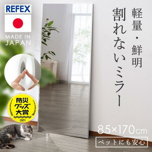 リフェクスミラー 特大姿見 85×170cm NRM-7 サイズ(約) 幅85×高さ170、厚さ/2.7cm。重量(約) 4.0kg。設置方法 壁掛け・立掛け両用タイプ。材質 表面:ポリエステルフィルム...