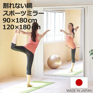 割れない鏡、「REFEX」ミラーのスポーツタイプ。 本体裏上部両端に付いたフックの受けで吊るすことができる、横幅90cm×高さ180cmの大型壁掛けミラーです。 多少の動きがある場合でも身体全体を映すことができるサイズで、フィットネス...