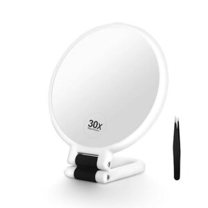 メイクアップ 【新しいデザインを採用する】両面にそれぞれ等倍鏡と30倍拡大鏡があり、等倍鏡は顔全体を見ることができ、日常生活に非常に適しており、もう一方の面には30倍拡大鏡が肌の細部をはっきり見ることができる...