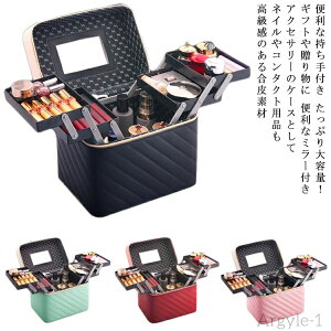 ■たっぷり大容量!広げると左右2段/3段のトレイに、大きなメイン収納。化粧用品やメイク道具がたっぷり収納できるメイクボックスです。■便利な持ち手付き持ち運びにも役立つ持ち手付きのバニティポーチ。お出かけや旅行にもこれさえ