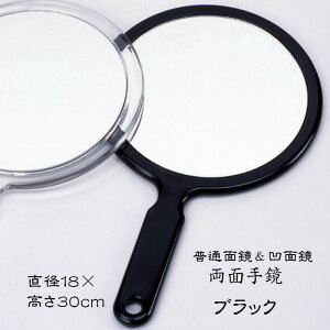 サイズ 直径18cm×高さ30cm 素材 枠:樹脂製 鏡 色 ブラック(黒) 商品説明 枠が樹脂製の両面手鏡です。 表が普通面鏡、裏が凹面鏡(約2倍に見えます)になっています。 クリアーとブラックの2色あります...