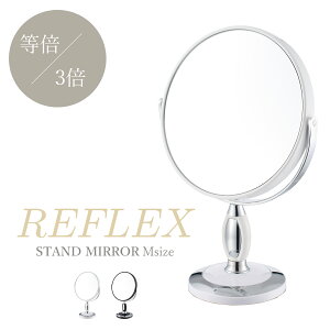 スタイリッシュでモダンな雰囲気のワンランク上の卓上ミラー。 曲線が美しい、シンプルな形で飽きのこないデザイン。 ミラーは両面仕様で等倍と3倍の拡大鏡の組みあせになっており、細いメイクや見えにくい部分もしっかり見えて使いや