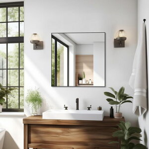 メイク 【ブラックメタルスクエアミラー】フレームはアルミニウム合金製で、表面はブラシ仕上げで、四隅はシームレスに接続されており、酸化しにくく、錆びにくく、耐久性があります。 【高反射率ウォールミラー】透明な強化ガラスが