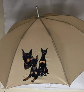 ミニチュアピンシャー柄がプリントされた65cmのサイクロンジャンプ傘です。<素材> ポリエステル100% ポンジーポリエステルは、紫外線カット(UVカット)効果があります。カット率65%なので、日傘としてもご利用できます。<サイズ