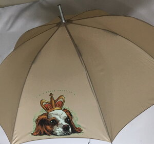 キャバリア柄がプリントされた65cmのサイクロンジャンプ傘です。<素材> ポリエステル100% ポンジー<サイズ>使いやすい65cmタイプです。<カラー>ベージュのみプリント可能<プリント>実際の傘には、商品説明左側にある、絵柄1を