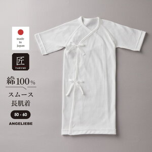 QUALITY:綿100% 日本製 一年中いつでも快適に着ていただけるフライス素材の長肌着です。 長肌着は、足の動きの少ない新生児期に使う肌着 カラー 白 サイズ 50cm