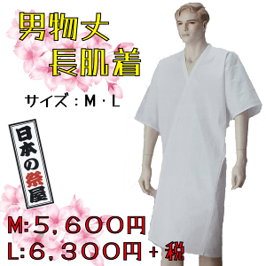 男物丈長肌着です。 【サイズ】L:身丈115cm 身巾約68cm 裄約60cm 袖口約23cm 袖付約27cm 【素材】身頃・袖(綿100%) 掛衿(キュプラ100%) ※お取り寄せ商品のため、発送まで少々お時間がかかります。また、返品・