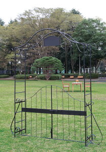 バラ等のつる性植物に最適なガーデンアーチ。 庭やアプローチの演出にフラワーアーチはいかがですか。 門扉付の重厚なアイアン製でお庭をグレードアップ! サイズ アーチ