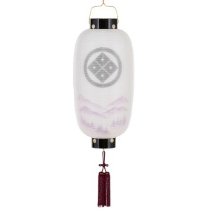 内側の火袋に貴家の家紋を濃墨でお入れします。先祖の霊が迷わずに帰ってこられるよう門口に掲げる「門提灯」は、古来より各地に残る習わしです。火袋が円形に近い形の丸型門提灯です。外火袋絹張り・内火袋和紙張りの二重火袋、輪は木製黒塗り、紫房付...