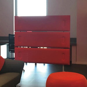 吸音効果で騒音を軽減。キャスター付きで移動もできる、吸音パネル付き3連パーティション。グレー。