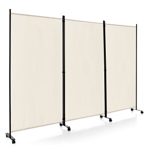 吸音効果で騒音を軽減。キャスター付きで移動もできる、吸音パネル付き3連パーティション。ベージュ。
