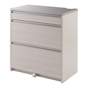 商品の特徴 シンプルですっきりとしたデザイン。 11.5リットルのダストボックス4個付きですっきりと収納してご使用いただけます。 天板は熱に強くおしゃれなステンレス仕様。 引出しは出し入れスムーズなスライドレール仕