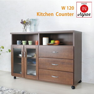 キッチンカウンター 120 完成品 日本製 キャスター付き キッチン収納 家電置き 食器棚 カントリー風 無垢材 レトロ ホワイト ブラウン おしゃれ レトロ 台所 NAK-003