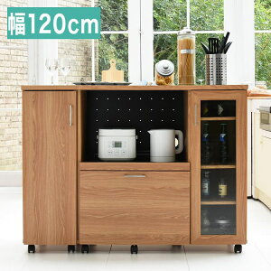優しい木目調でシンプルデザインのキッチン家具「ラフィカ」シリーズのレンジラックです。 二か所のスライドトレー、キャスター付きワゴン、可動タイプのオープン収納が組み合わさり、機能性抜群です。 これ一台で調理家電から食器、小物類まで全て収...