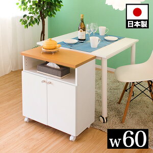 ■【組立式】キャスター付きテーブル 幅60cm ホワイト 木製 キャスター 日本製 キャビネット 収納付きテーブル 間仕切り ダイニング収納 サイドボード 収納 おしゃれ■メーカー希望小売価格はメーカ...