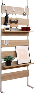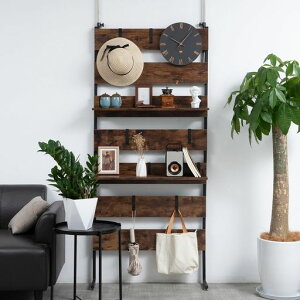 【材質】本体:プリント紙化粧繊維板フレーム:スチール(粉体塗装)【耐荷重】フック1本あたり:約1kg棚板1枚あたり:約2.5kg総耐荷重:約30kg以下/付属品:フックx6、棚板x2 【壁を傷つけずに簡単設置】天井に固定する突っ張り式...