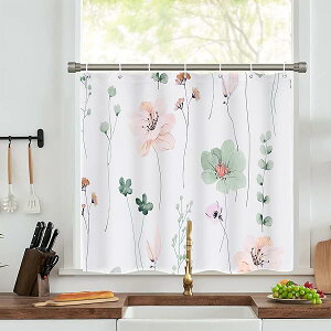 お風呂小窓カーテン 浴室窓 110cm丈 防水防カビ 防水防カビ 目隠し 断熱 シャワー 速乾 間仕切り 高密度生地 ユニットバス 浴室 花柄 リング付き 取付簡単 グリーンブランド色グリーン・flo...