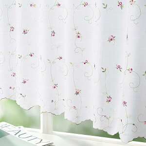 カフェカーテン 小窓 80cm丈 お風呂カーテン 目隠しカーテン 間仕切り UVカット 省エネ 通気 オシャレ 高級スラブ綿麻質感 かわいい花柄刺繍 浴室窓カーテン 取り付け簡単ブランド色ホワイト・花...