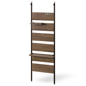 使い方や間取りに合わせて設置できる、伸縮式のオープンラック。 背面から見てもおしゃれなデザインで、お部屋の間仕切りとしてお使いいただくことも可能です。 ブラウン、ホワイト、ナチュラルの木目柄3色からお選びいただ