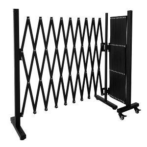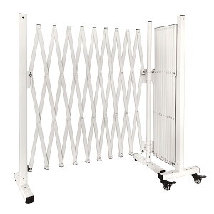 最大約3.1m展開可能ガレージフェンス、玄関の門扉など幅広い用途。アルミ製だからサビに強く、お手入れ簡単。ロック付きキャスターで開閉ラクラク。工事不要で簡単設置。固定脚部には調整アジャスター付き。収納時の広がりを防止するステー付き。