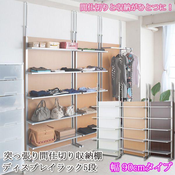 ◆耐荷重:【棚板】各5kg【S字フック】各1kg【ハンガーフック】各1.5kg 天井つっぱりタイプの間仕切り収納|地面から天井までつっぱりで固定できる間仕切...