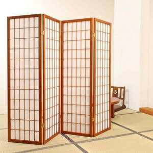 0*43*4=高さ約180×幅約43 パネル数:4連「和風衝立」手軽に和の空間を演出できる折りたたみ衝立・障子風スクリーン。障子の衝立ごしにやわらかい光がもれお部屋をやさしく包み込みます。置く