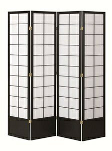 商品名 和風 衝立 4連 柄 華吹雪 サイズ W450mm×H1800mm×4連 フレーム 木製 黒(ブラック) 幕部 破れにくい障子紙 蝶番 両方向に360°回転可能
