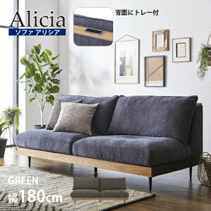 こちらの商品は大型商品につきまして、商品代金とは別に配送設置料が必要です。【幅180】ソファ 3人掛け 「アリシア」グリーン トレー付 ●包み込まれるような座り心地 座面のクッションはフェザー入り。座る人に合わせてふわっと包み