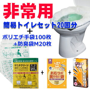 災害用トイレセット (携帯トイレ20枚 防臭袋20枚 ポリエチ手袋100枚) [簡易トイレ 携帯トイレ 地震 非常用 緊急 避難生活 防災用品 防災グッズ 防災セット 災害時 断水時 アウトドア 介護...