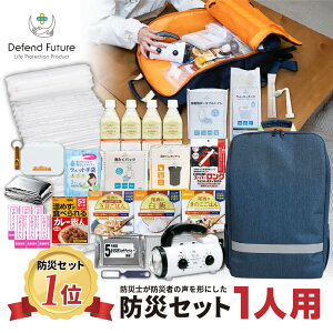 東日本大震災を経験した防災士が監修した、食品付きの1人用43点入りの防災セットです。災害時に役立つ用品をセットにしました。食品内容にこだわり、飽きのこないセットになっています。リュックは水に強い、ターポリン生地・止水ファスナーを採用し...