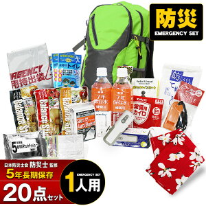 防災士が監修した防災セット! 枕入りで一泊可能なセットです。 難燃性のナップサックタイプなので、万一の火事の際にも荷物を守ります。 セット内容 非常用持出袋×1、非常用アルミシート×1...