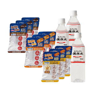 河本総合防災エマージェンシークッキー9食・保存水(3日分/1人用)1セット。1人×3日間の食料と最低限の保存水セット。