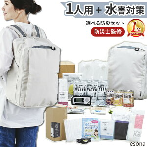 一緒にお届け/ 水害にも対応!浮く防災リュックに、防災士監修の必須グッズ30点をセットした安心の1人用パック。(2カラーから選べます) リュック