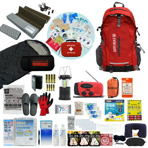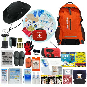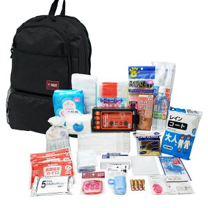【セット内容】リュックサック、緊急用ホイッスル、2WAYドライバー、ミニカッターナイフ、圧縮袋、予備袋(小銭入れ)、筆記用具セット、歯ブラシ3本、綿棒20本、マスク3枚、携帯トイレ3個、ポリ袋 45L 3枚、紙皿3枚、プラカップ5P、...