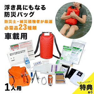 EX.ドライブ・セーフ・ホーム 浮かぶ防水バックパック付車載防災セットDXの解説 非常時に浮き具としても使える防水バックパック。 このバックパックは、完全防水仕様でありながら、空気を入れることで浮き具としても使用可能です...