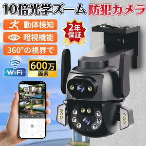 防犯カメラ 屋外 ワイヤレス WIFI 最大600万画素 10倍光学ズーム デュアルレンズ 自動追跡 夜間撮影 遠隔監視 マイク内蔵 SDカード録画 防水