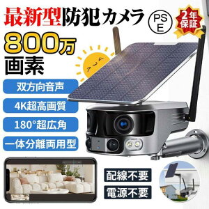 防犯カメラ 屋外 180°超広角 ソーラー 800万画素 防水 防塵 wifi 録画機能 無線 4K画質 家庭用 電源不要 IP66 動作検知 音声通話 見守りカメラ 監視カメラ