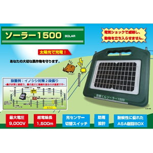 ソーラーパネルタイプです。 ・最大電圧9,000Vのハイパワーで害獣の侵入をブロックします。 ・電気柵に当たったイノシシは、電気柵が危険だ
